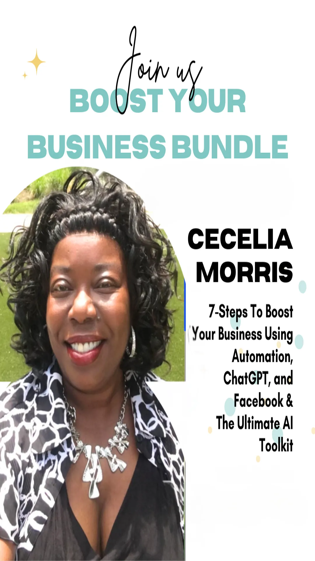 Created by Cecelia Fay Morris — author, marketing strategist, speaker, ChatGPT expert, and creator of tools that get results (not just attention). With a Master's Degree in Management of Information Systems, hundreds of training videos and a following of 25K+, Cecelia’s mission is to help real people get seen, booked, and paid as professional speakers.